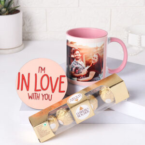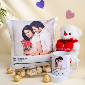 Personalised Cushion With Mug Teddy N Ferrero Rocher